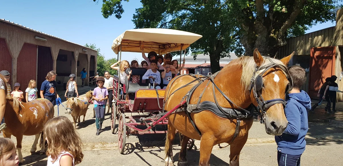 Au cours de la journée, les enfants auront des temps à poney (cours ludiques d’équitation et balades) et des temps auprès des poneys (pansage, calèche…).